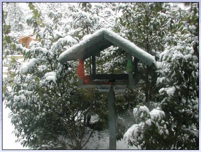Vogelvoerhuisje voor het huis.